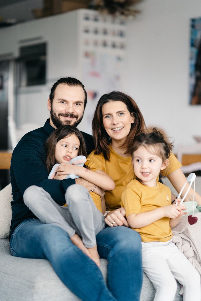 Lara switten met haar partner steffen en hun dochters philippa (5) en romée (2).